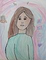 My wonderful Granddaughter you are so beautiful in your drawing. Pretty little smile and eye plus your ear rings are very pretty also. Your dress of many color shows how happy you are. Love Nana