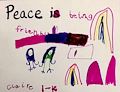 Hi Claire! This is Grandma Mary! Thank you, Claire, for sending me an awesome picture you made about International Peace Day. I love this picture! It is very beautiful! I see two pretty little girls in this picture! :) :) PEACE IS BEING FRIENDLY. I will keep this special picture up on my refrigerator door at my house! Have a fantastic week at school! At the end of this week on Friday, I am coming over to your house to see you and Emily. I will be waiting to see you get off your school bus! I love you!! Grandma Mary :) :)
