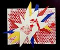 Hi Claire! This is Grandma Mary! :) Thank you for sending this very special artwork to me! I love this Pop Art creation you made! It is a very cool idea! I see your red painted air bubbles displayed as the background! I am sure they were fun to paint! What a fun idea! I also like your exciting and very colorful arrangement of blue, red, yellow and white triangle shapes you glued on top of your artwork background! YAY!!! 3rd grade is fun because you are so smart! I love you! Grandma Mary :) :)