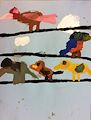 Dear Nathan, I So Love All Your Artwork....I see a real creative side that I am Happy you are expressing. I truly love the Birds on a Wire!! The colors and formation are Very Good as well as the clouds. You did a Great Job! Keep that paint brush moving! Love Grandma Cindy