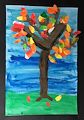 You used beautiful colors for your tree and three leaves. Looks like the trees by my house! Good job! -- Mona