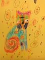 Dear Evan, your art is pretty, it might be a calico cat with a curly tail .love, great-grandma