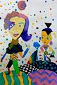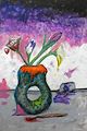 I love how you made the flowers look as tho they were dripping and losing pedals. The detail of the yellow flower is amazing. The texture on the table and the top of the background adds to the completeness of this work.
