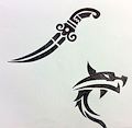 The dagger design resonates with ancience and the dragon's face is cleverly incorporated in the symbol. Striking, Emma!