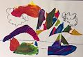 Emily! I like this painting with all of the shapes you drew. The block E and the 3-D box are difficult to do! Your hand makes this a special picture to save. I'll see you soon! Love, Grandma Grandpa likes this, too!