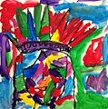 Dear Emily, I love this colorful painting! It looks like the Statue of Liberty. After looking carefully, I can see her features in this Modern Art style. Have fun in art this year! Love, Grandma