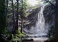 I don't think I've seen this landscape, Dad! Absolutely beautiful! The moss on the trees and the waterfall and mist is amazingly realistic! Wow!