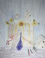 Hi Wyatt! It's Aunt Katie! I love your beach scene! It's so exciting to see your work. Please tell your teacher to send me a copy of all your future artwork. How is EV Caine? Wow middle school! Do you get a locker? I can't wait to hear about your adventures.