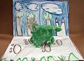 Moriah, You are an amazing aritist! I love the beautiful landscape, all the different shapes and colors. Your dinosauer is awesome. I especially love its comment. Great work sweetheart!