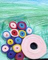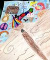 Nice work, Zoe. I love the way the images flow across the page, and I like how the bright colors are working their way down into the brown and gray, as if your symbols were gradually filling up the space. Great energy and movement. Have you ever used water-soluble colored pencils? They let you draw and color with the pencils, but then use a wet brush to blend the pigment. They're a bit challenging, but I think you would enjoy working with them. Keep up the good work!
