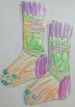 A wooden shoe full of treats! This is what your ancestors and other relatives did in Holland, and it's why we have wooden shoes on our hearth at Christmas. This artwork has a lot of meaning! Nicely done, Cadence! Love,