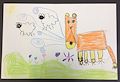 This artwork make me smile! The warm colors of the fall pumpkins set against a blue sky and green grass all add up to a happy scene. Well done, Cadence! Love you!