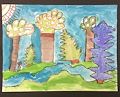 Lovely picture, Cadence! The perspective you created by diminishing the size of trees is quite good. I also like the rolling countryside you drew. Keep up the good work!! Lots of love,