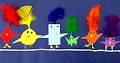 The colors in your artwork BG, and the placement of the geometric shapes you drew remind me of our FUN dance parties!
