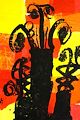 Very dramatic and a "strong" choice of colors! Makes you want to stop and look at your artwork!! Good job! Love you!??