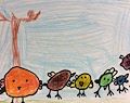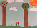 Grace, what a beautiful depiction of Spring. The clouds in the sky, the large fruit-bearing trees and the colorful flowers amidst the green grass are all signs of wonderful things to come. Not only are they signs of wonderful things to come, but of the beauty of God's work. Never forget that. Also it is suggestive that school will be out soon. YAY!! Fun times coming!! Love you.
