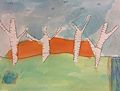 What an interesting picture you created of these birch trees. The scene depicts a forest of autumn. I understand you designed these trees from tape and painted the scene with water colors and detailing with assorted colored pencils. How clever! Keep up the good work. Love you.