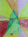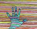 Grace, I love the beautiful warm and cool colors in this drawing of your hand. My favorite colors are of the inside part of your hand, especially the various cool shades of blue and green. As you know they are my favorite colors, or shades therof. The warm colors of red, orange and yellow in the horizontal strips are attractive as well. Keep working hard!! Love you.