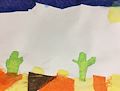 Hi Grace! Looks like you've been working hard. This is a great picture of cactus in the desert with a beautiful blue sky above and the hot sun spreading its rays upon the dry earth below. I understand you made this collage with tissue paper. The colors you used look just like ones I saw when I was in the desert on vacation traveling out West. Just beautiful. Keep up the good work! Love you.