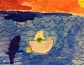 Hi Grace! I understand you studied three paintings illustrating boats in the water. This is a lovely picture and very colorful. I'm wondering if this beautiful girl is a mermaid given your fascination with Ariel. And, is she being greeted by some sort of water creature, perhaps a dolphin. Since I am a water and boat lover, I think this is one of my favorite pictures!! Love you.