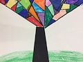 Happy Day, Grace! What a lovely creation of a cubist fall tree. The lines are so precise and the colors are quite beautiful. I understand the colors were made by using watered down glue and colored tissue paper. Who would think this concept could make such a handsome piece of artwork. Perhaps we could create a picture sometime using this technique. Great work, girl!