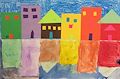 Andrew, I really like this painting! You did a great job matching the colors in the reflections to the cut paper city. ?? Mama