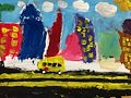 Max I love the picture of your city. It is so colorful it makes me happy. The school bus is a neat detail. Are you on the bus? I love you, keep painting!