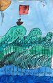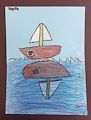 ”The Ship at Sea” art project showing the large waves with the ship with a flag, shows your detail to the movement of the ocean and your ship. Good job, Reagan!