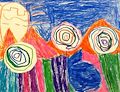 I think your landscape is beautiful! The orange and pink mountains are brilliant. The circle flowers are perfect. Your work makes me happy!
