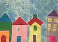 What a great contrast between a beautiful impressionistic blue ale and the primary colors the make up the buildings which are clearly influenced by Piccaso’s cubism movement. That’s a village to dream about!