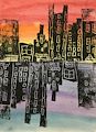 Your skyline is beautiful. I especially like the color of the sky with it's pink and coral. It reminds me of Florida. I also like the reflection of the buildings in the water. Very creative!!! You are a talented artist.