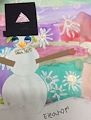 Hi Eleanor. I really felt happy viewing this piece. I like your use of pastel colors and the snowman eyes made me smile. It's almost as if I could envision this snowman talking to me.