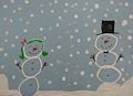 What a great abstract collage! I really like different shades of blue you used for your winter collage! The big white shape looks like a giant snowball! Great job!