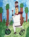 This biker looks well prepared for a wonderful adventure. With a good stash in the bike baskets and a totally colorful hat and scarf to complete the outfit. You did a super job on this one, Erika, and Gramma and Poppa are so enjoying your artwork. We look forward to more of it. Maybe you can name your next picture, I think that would be fun and creative for you. You have such a good creative imagination. We love you very much. (My favorite is still the elephant, so majestic and detailed! Gramma)