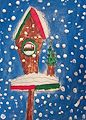 Erika: This is a great Christmas scene! I really love the snow falling on the perch, and on the roof of the birdhouse. Daddy and I are so glad you're going to continue your art class for next spring - keep up the good work!