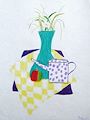 This still life is lovely. The flowers and greenery in the vase look so real I just want to touch them. Your design on the cloth piece sets it all off so nicely. Keep up your most enjoyable work, Erika. Love, Gramma
