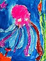 What an exciting use of color for the undersea world! We love that your octopus has his friend the eel with him, as well. Good work!