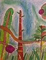 Erika, it's nice to see your first work of the school year! What a neat tropical scene, with the macaw and the waterfall. We really like the butterflies, too - this is a very colorful scene. Looking foward to great things from you this year!