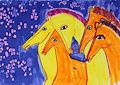 Love the shades of blue. Animals are a little to the right but angles of heads draw my attention towards center of the work. I like it. -- Joseph Paul