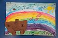 Hey, Kale, I was so happy and cheered up to get the message with your picture on it when I came back from lunch today. You did a really good job of showing that all the people and animals are so thankful that God took care of them, and are so excited to be able to walk on the earth again. Great job, Buddy!