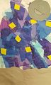 I enjoy the smiley face on your Moon in the sky! The blue and purple tones of tissue papers & yellow diamonds make a great night sky. Keep up all the Good Work!