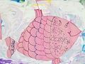 I like how you separated the negative and positive spaces in the picture, using a fish and ocean theme! Love the paint marbling technique blending with the drawing of the inside of the fish!