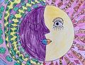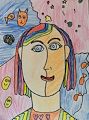 I love the purple hair and all the squiggles in the background. Very creative!!!