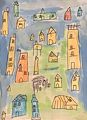 I love your colorful village. You did a good job drawing them. Love -- Grams