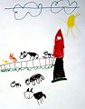 The farm picture is great. I love the big red barn and all the animals. You are doing a great job with your artwork and I am so proud of you! Love, Gammy