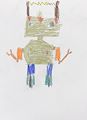 Hi Ellis. Nice robot picture. Is the robot wearing blue jeans? Does the wavy line above its head mean it's thinking? Thanks for sharing your art project! Grandma