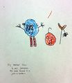 This looks like a good rendition of one of the trees in our backyard right after they all got a major trimming. They were pretty funny looking for a while there, huh?... Have you noticed how they get to looking a little better, though, as time passes? You can look at them now and see how much they've grown & changed during the 16 months (1 year, 4 months) that has passed since they were trimmed. The same can be said of a lot of growth & change that you've experienced during the time these trees were growing. Can you picture your growth chart at home in your room? The marks keep getting higher and higher as you keep getting taller and taller, huh? And as the trees' limbs are just like your legs & arms...they keep getting longer and longer! Do you think trees get growing pains from their limbs growing like you do in your knees? Ooh, maybe that's why Christmas trees like Aspirin with their water... what do you think? :-) You have changed alongside the trees' changing as well. When the trees were trimmed, you were only 4 years old. Kindergarten seemed so far away back then, huh? Think of everything you've done, all the places you've visited, all of the crazy adventures and fix-it projects we've completed. I was teaching you how to write your name, the alphabet, and numbers when the trees were trimmed. And, look at you now!...You're reading complete sentences, doing math problems, and so much more! You know, people say that a picture is worth a thousand words... And this picture of yours is a perfect example. In fact, you did such an awesome job, that it was worth a total of 1703 "characters" (letters) that it took to compose this comment. Another masterpiece, son! I Love You!!