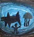 Molly, I love your shark painting. The shark swimming in the dark blue water is very real looking! ??