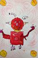 WOW! What a cute little robot! You are becoming a great little artist! We love getting these emails of your artwork! Good job, Mason!! Love, Ma and Poppy