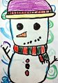 What an adorable snowman you created! Is his name Frosty? I hope we get some snow so you can build a snowman that looks just like this one. I love his purple hat and his green and red scarf. Great job, Mason! Love, Ma and Poppy